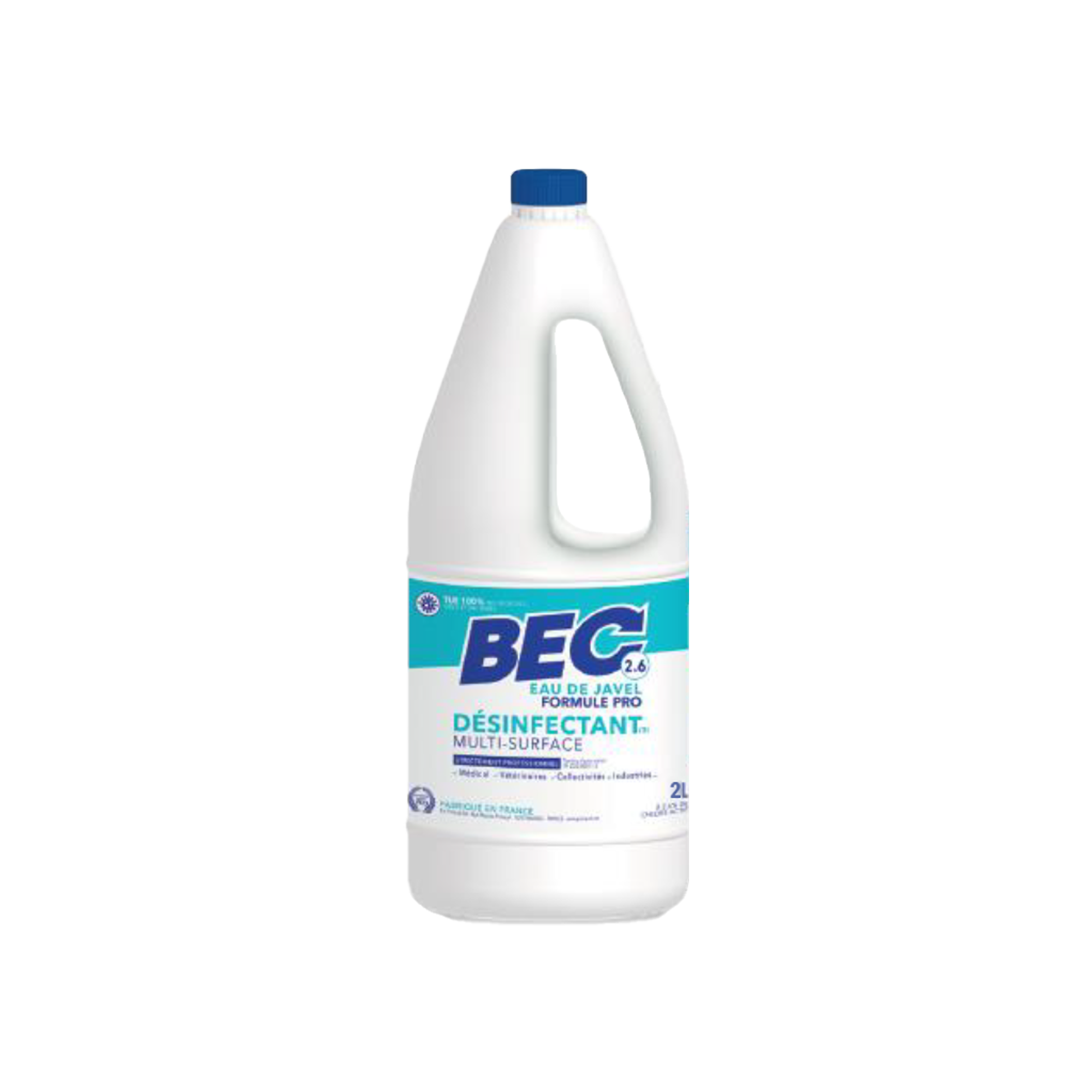 | Mode d'emploi | Pour la maison : Cuisine, salle de bains, toilettes, fosses septiques (1 à 2 fois par semaine maximum), poubelles, vide ordures, sols, carrelages : ½ à 2 verres (100 à 300 ml) pour 10litres d'eau, rincer après 10 mn. Pour la restauration collective : Locaux, matériels, sanitaires (y compris fosses septiques) : de 300 ml à 3 litres pour 10 litres d'eau. Pour un usage en contact des denrées alimentaires : Batteries, ustensiles, vaisselles : 750 ml pour 50 litres d'eau, rincer obligatoirement à l'eau claire. Blanchiment et désinfection du linge (sauf laine et soie) : utilisation en machines à laver ou à la main : ½ à 2 verres (100 ml à 300 ml) pour 10litres d'eau. Eviter le contact direct avec le linge. |